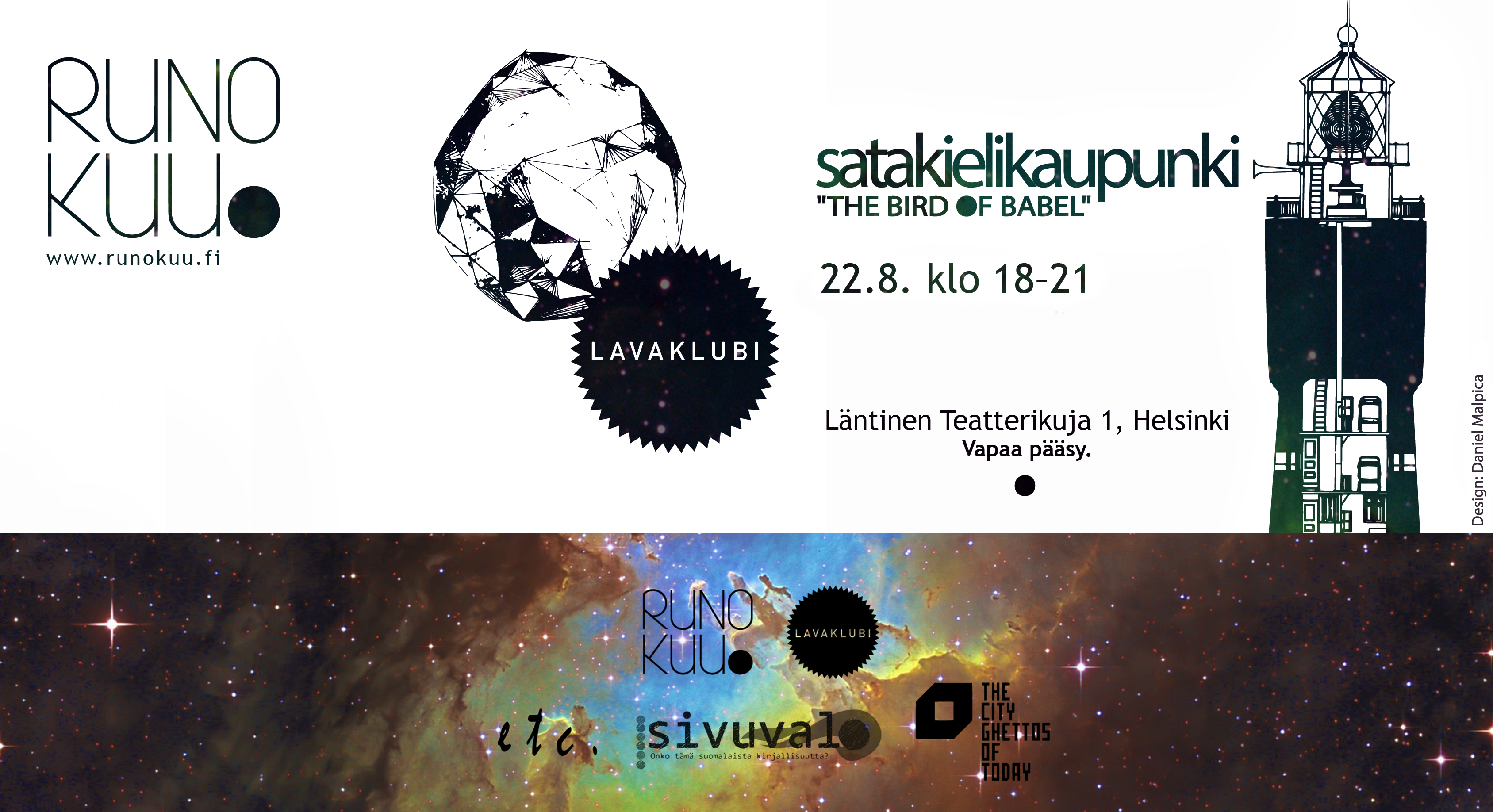 Järjestäjät: Runokuu, Sivuvalo-projekti, City Ghettos of Today ja European Theatre Collective.