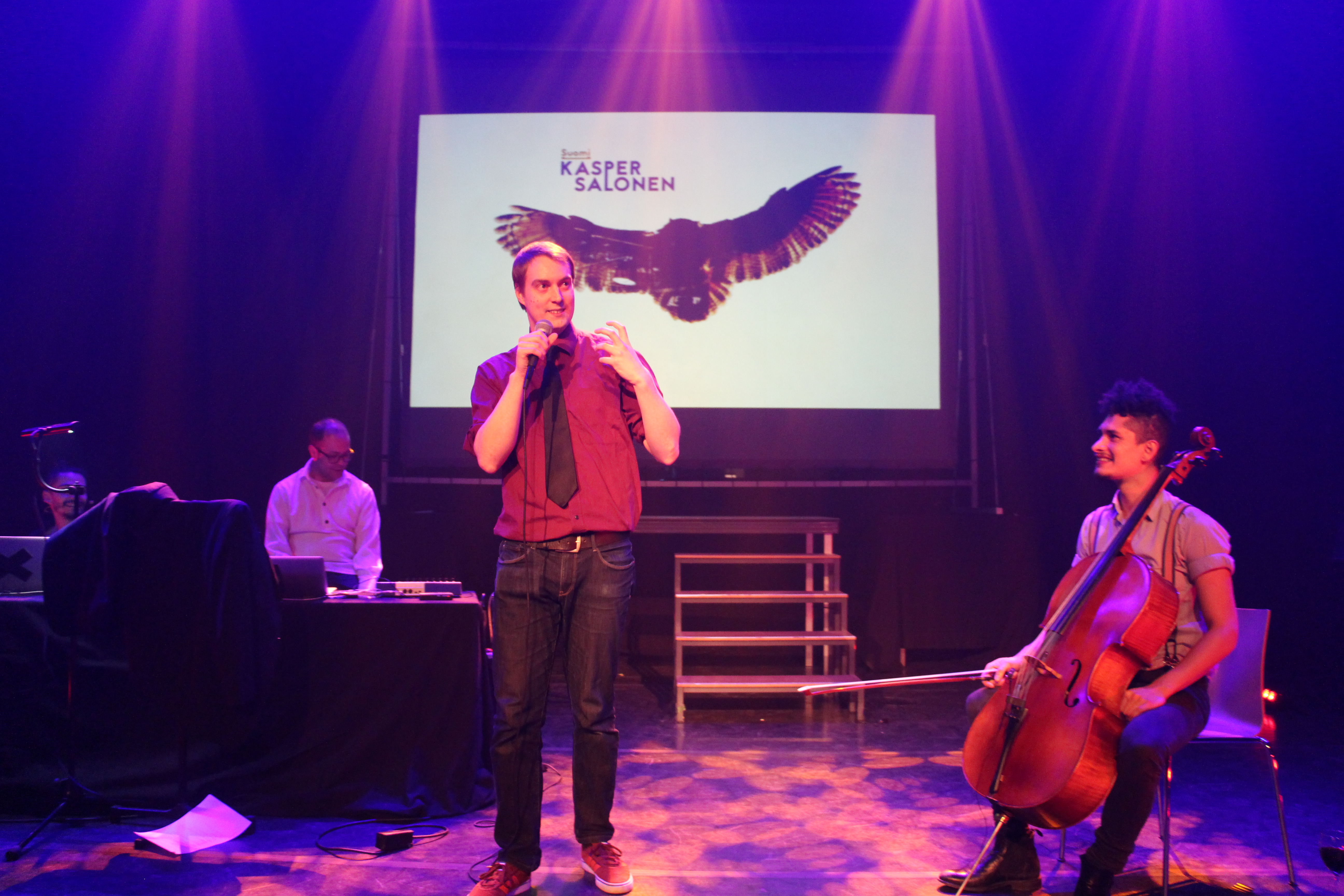 Satakieliklubi 21.03.2015 was an experimental and multilingual poetry night in Voutalo, eastern Helsinki, and it was the closing event of Satakielikuukausi festival. The night brought a variety of international writers performing among two excellent Colombian musicians; the projection of a Video-Poetry Series created in a workshop in collaboration with Hack Your Heritage Festival at Aalto University; and an Open Microphone as well. This projects was developed by Sivuvalo in collaboration with Stoa, Vuotalo and Helsinki Poetry Connection. Special thanks to Petra Hannus.