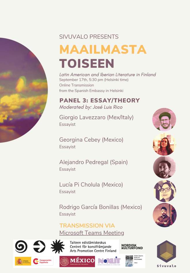 Maailmasta toiseen kirjallisuusfestivaali: Essee / Teoria sivuvaloSeptember 10, 2020April 7, 2022Maailmasta toiseen 2020 Post navigation PreviousNext (español) (english) Share this: Click to share on X (Opens in new window) X Click to share on Facebook (Opens in new window) Facebook More Click to email a link to a friend (Opens in new window) Email Click to print (Opens in new window) Print Like Loading... Related