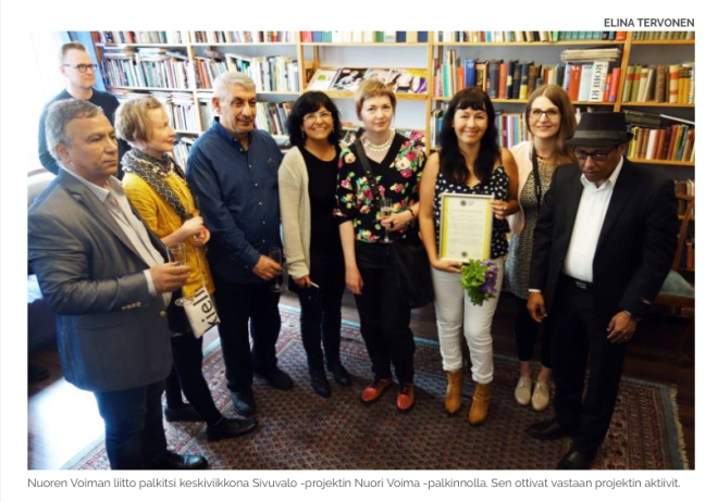 Kansan Uutiset 8.6.2017 Monikielinen Kirjallisuusprojekti Sivuvalo palkittiin Tässä koko artikkeli