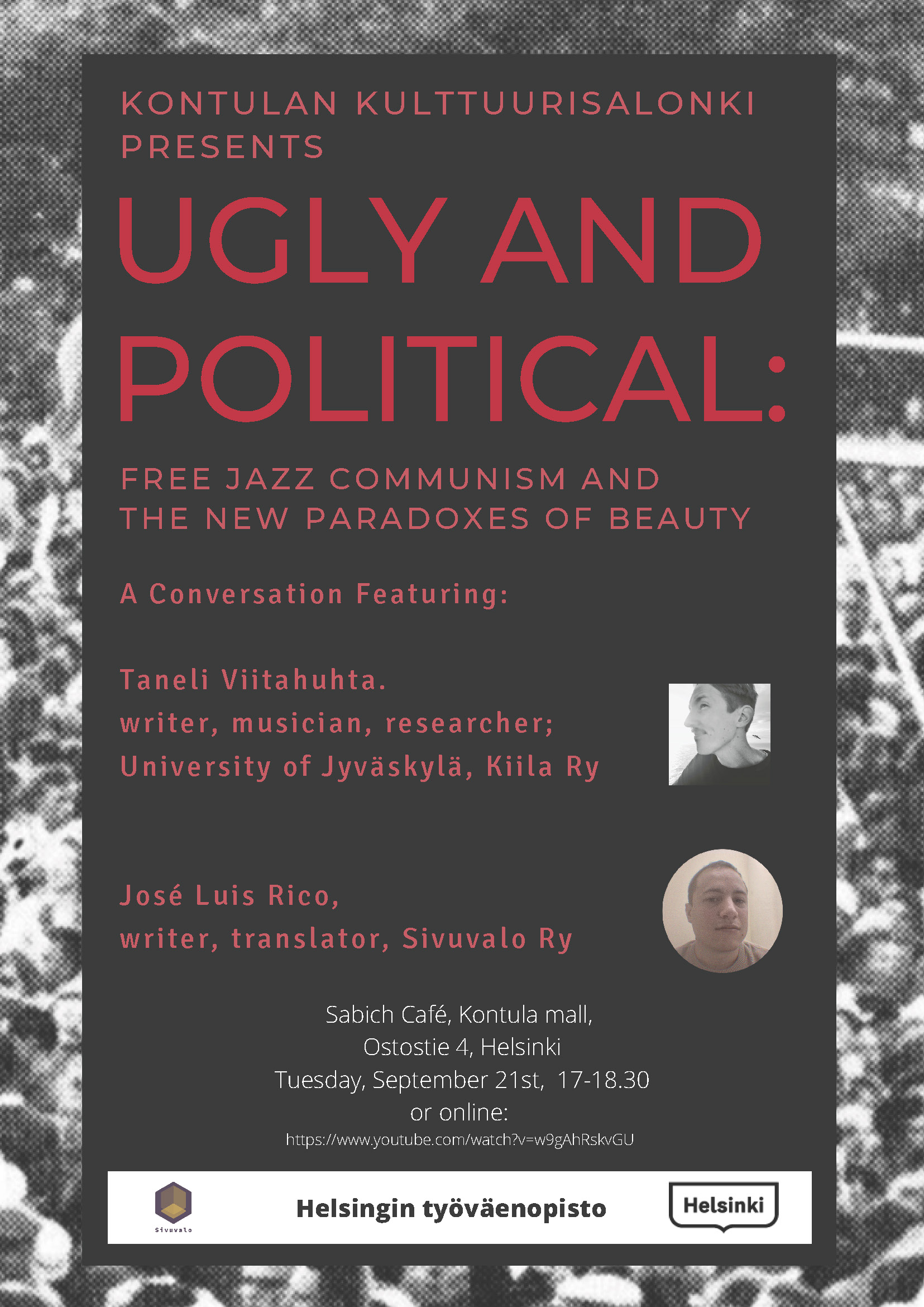 A Conversation Featuring: Taneli Viitahuhta. writer, musician, researcher; University of Jyväskylä, Kiila Ry, and José Luis Rico, writer, translator from Sivuvalo.
