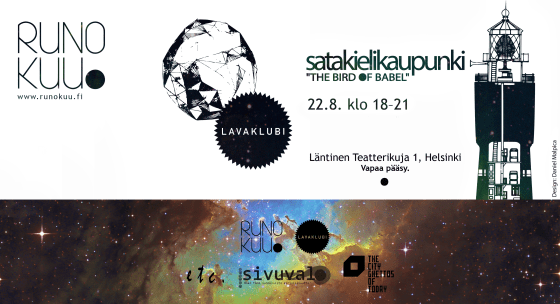 PERJANTAI 22.8. Klo 18–21 Lavaklubi, Läntinen teatterikuja 1, vapaa pääsy Sivuvalo-projektin erikielisten runoilijoiden Helsinkiin sijoittuva paikkasidonnainen runous sijoittaa kaupungin kartalle … More