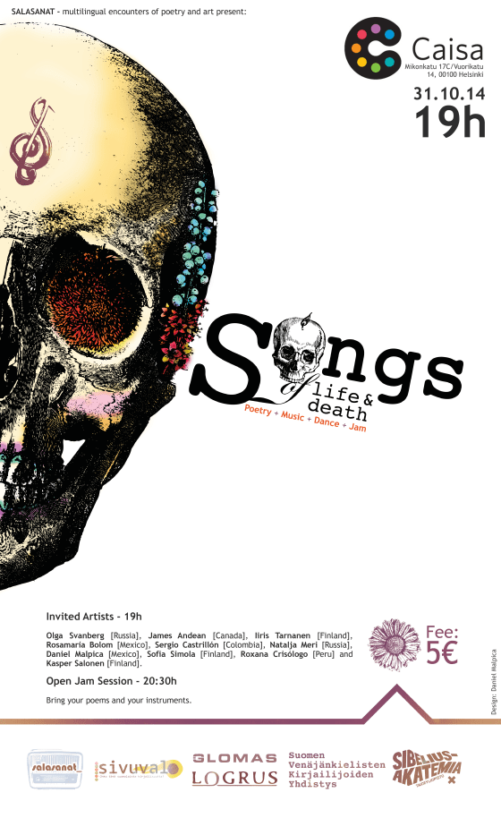 “Songs of Life and Death” was multidisciplinary poetry night in October of 2014 at Caisa Cultural Centre. … More